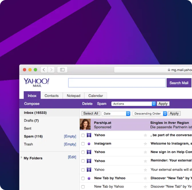 Yahoo Mail for Business is a professional email service that lets you use your own domain name (e.g., yourname@yourcompany.com) while enjoying the reliability and features of Yahoo’s email platform.